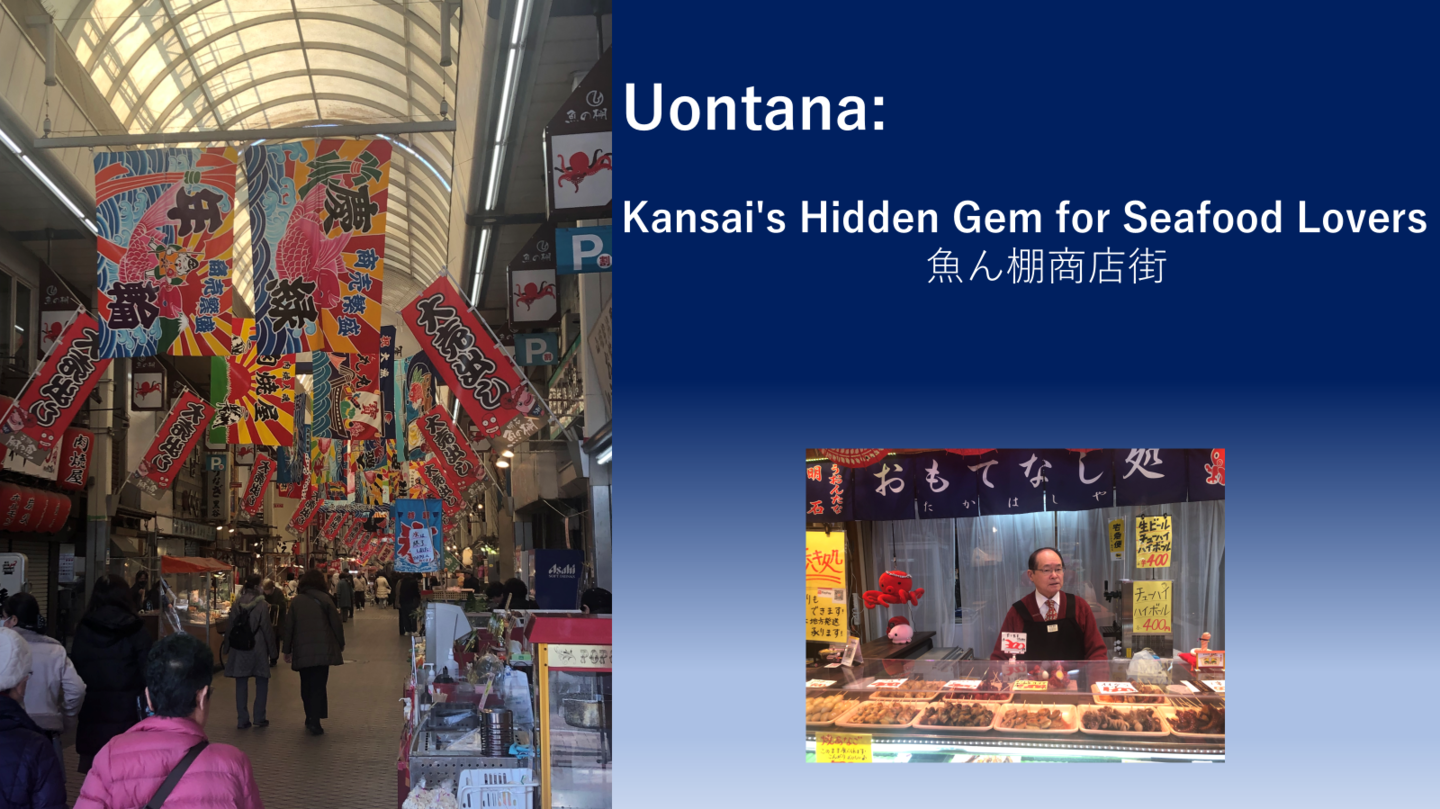 Uontana, though it may sound non-Japanese, is the name of the most renowned seafood market in the Kansai region. Nestled at the far edge of Kobe, this hidden treasure remains relatively unknown to those outside the city. Its location, slightly off the beaten path, has spared it from the challenges of over-tourism, preserving its authentic charm. As you step into Uontana, you'll be greeted by vibrant flags hanging from the ceiling—symbols of bountiful catches and blessings from the sea. These unique touches set Uontana apart from more tourist-heavy markets like Kuromon and Nishiki.