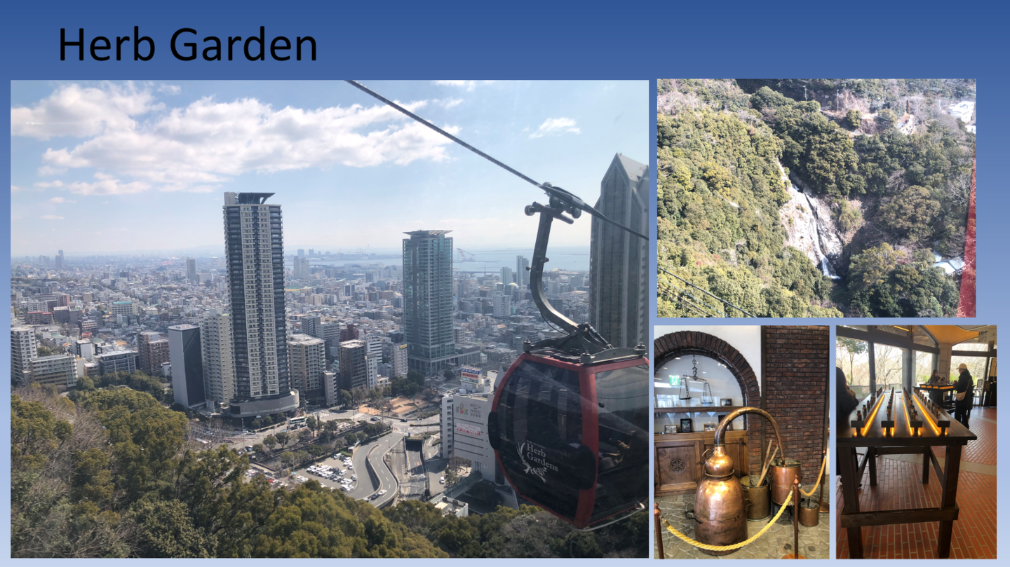 Herb Garden The ropeway connecting ShinKobe Station to the Herb Garden offers breathtaking panoramic views of Kobe Port and the most stunning aerial perspective of the Nunobiki Falls. But that’s not all—one of the highlights of the Herb Garden is its Fragrance Museum, where you can even create your very own signature scent. A visit to Kobe wouldn't be complete without riding on this incredible ropeway to experience this unforgettable destination.